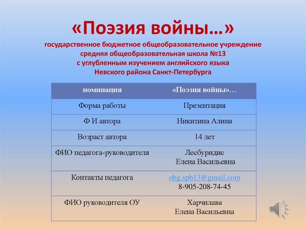 1. «Поэзия войны…» государственное бюджетное общеобразовательное учреждение средняя общеобразовательная школа №13 с углубленным