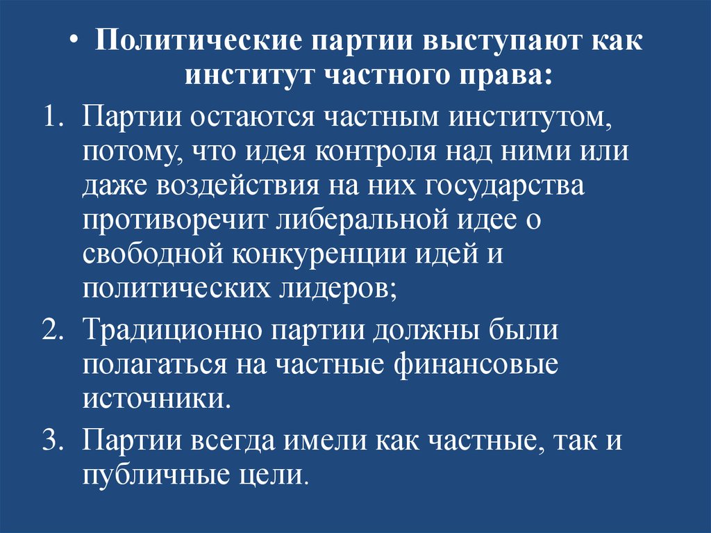 1. Партии остаются частным институтом,