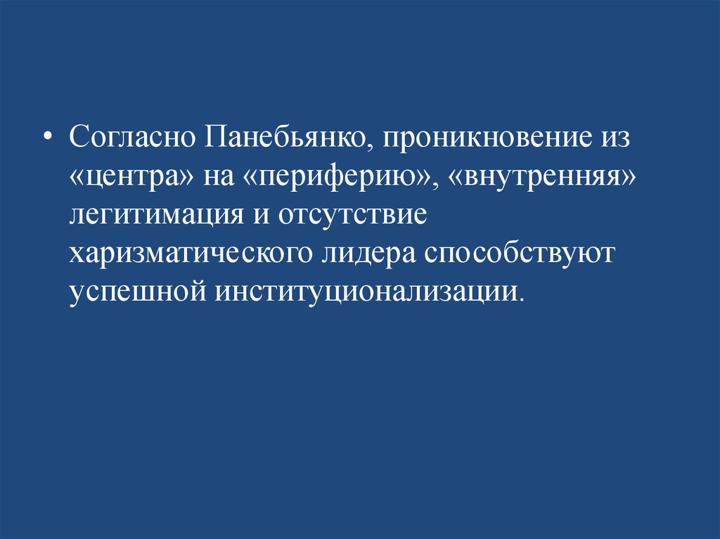 • Согласно Панебьянко, проникновение из«центра» на «периферию», «внутренняя»