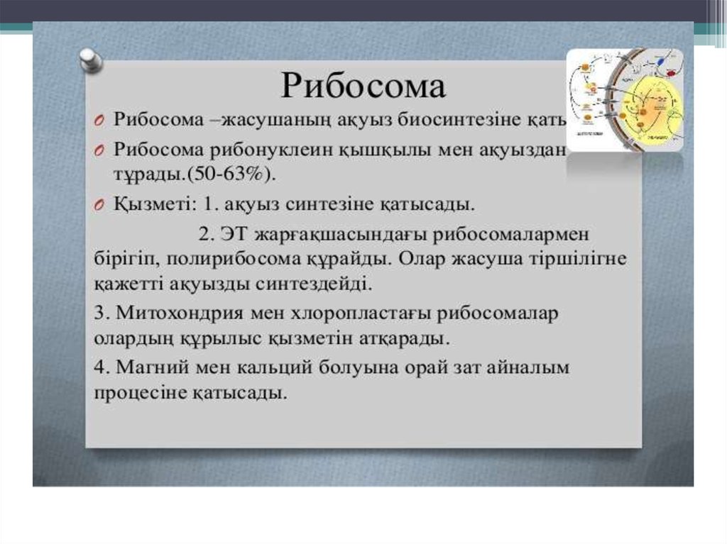 Цитоплазма органоидтері: жасуша орталығы,рибосомалар, олардың жасушадағы