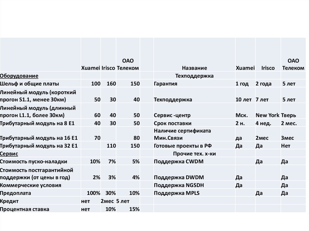 ВЫ - Менеджер департамена закупок телеком оператораВаша компания проводит тендер. В финал тендера вышли 3 компании: Xuamei, Irisco и