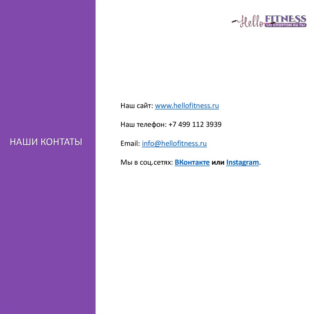 Наш сайт: www.hellofitness.ruНаш телефон: +7 499 112 3939