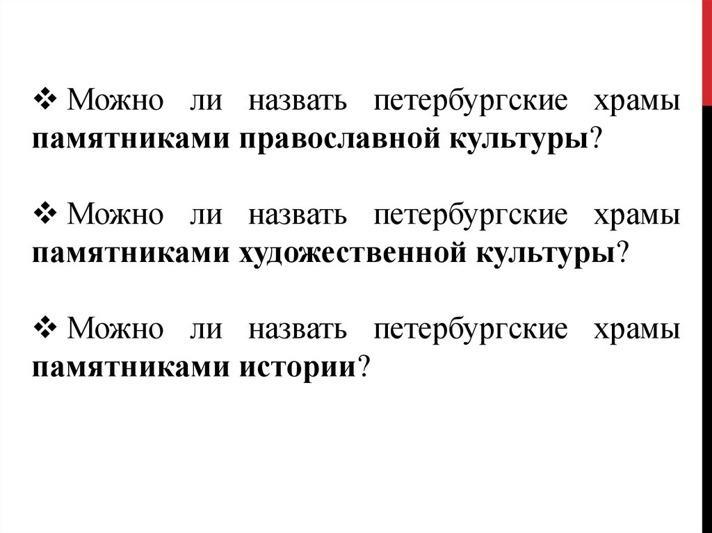 Можно ли назвать петербургские храмыпамятниками православной культуры?