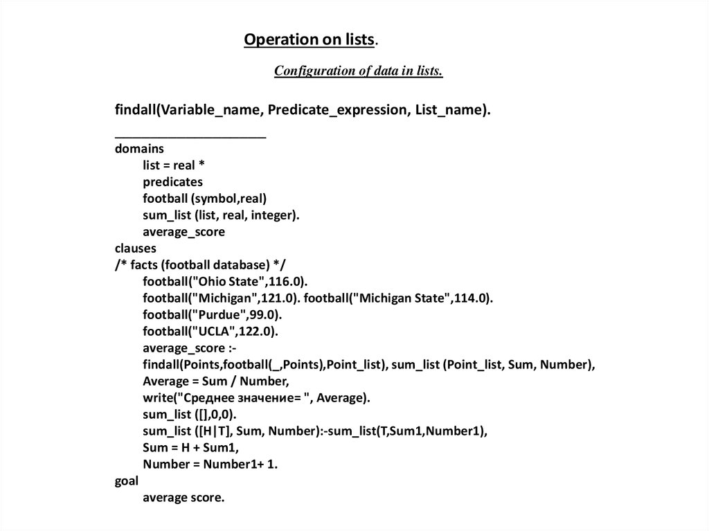 average_score :findall(Points,football(_,Points),Point_list), sum_list (Point_list, Sum, Number),
