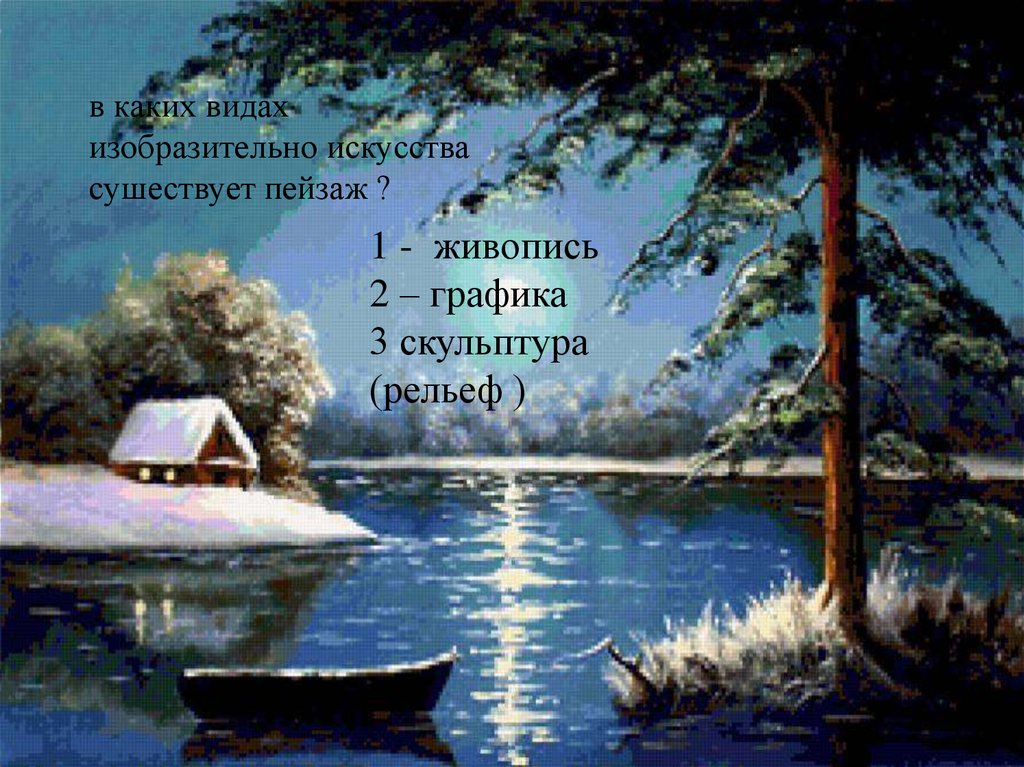 Пейзаж – жанр изобразительного искусства , предметомкоторого является изображение природы