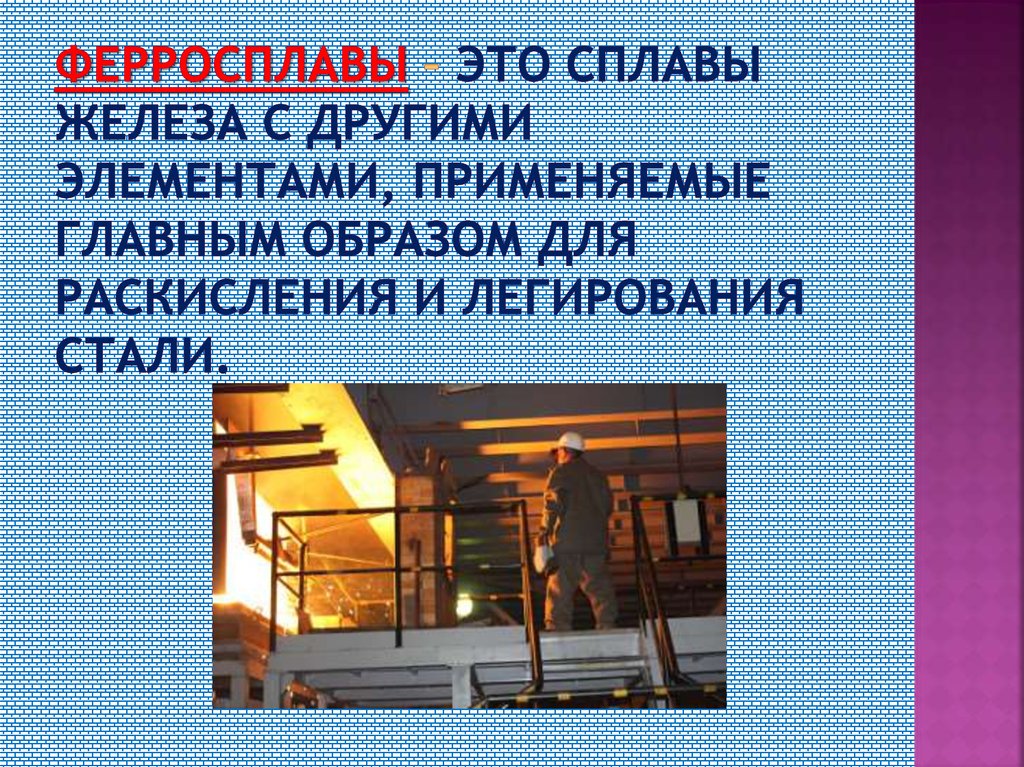 1. Ферросплавы – это сплавы железа с другими элементами, применяемые главным образом для раскисления и легирования стали.