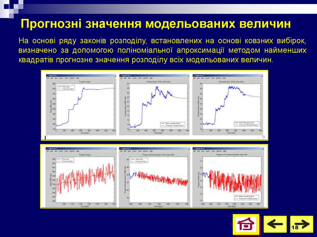 Прогнозні значення модельованих величинНа основі ряду законів розподілу, встановлених на основі ковзних вибірок,