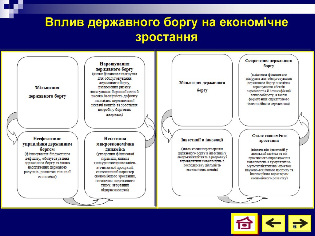 Державний борг, як невід’ємна складова економіки, забезпечуєвплив на грошовий обіг, фінансовий ринок, інвестиції, виробництво,