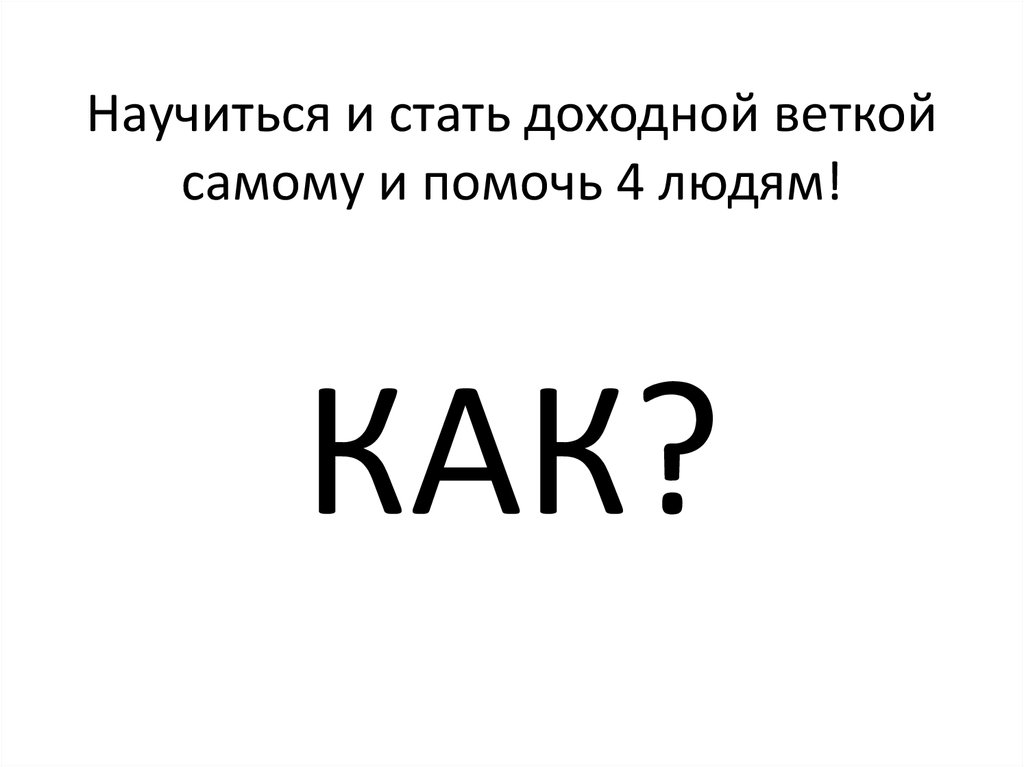 3. Научиться и стать доходной веткой самому и помочь 4 людям!
