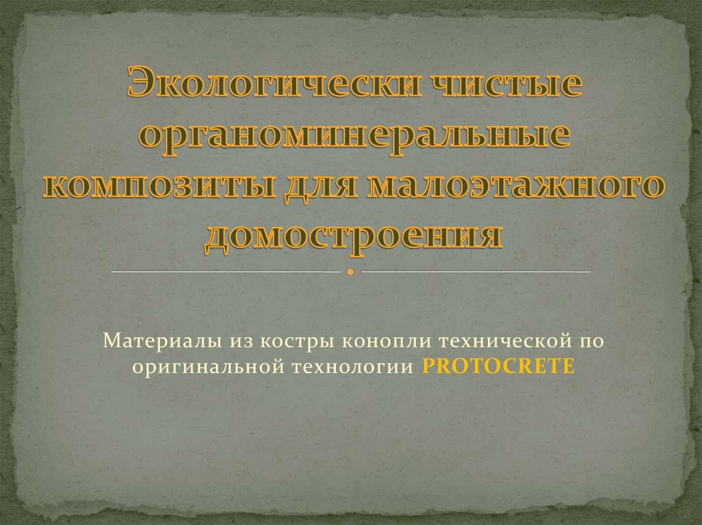 Материалы из костры конопли технической пооригинальной технологии PROTOCRETE