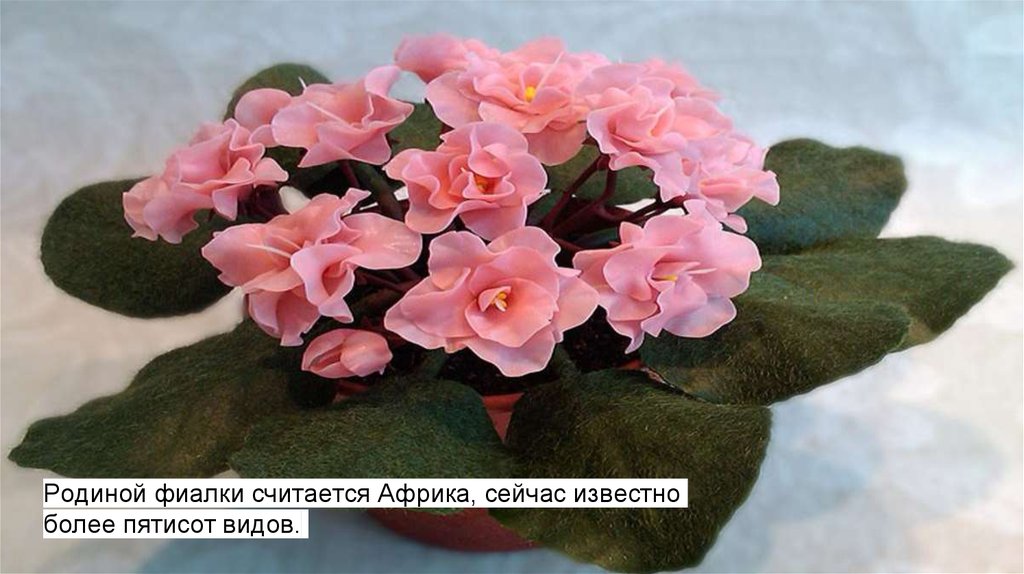 Родиной фиалки считается Африка, сейчас известноболее пятисот видов.