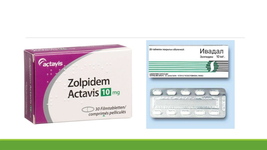 ◦ Циклопирролоны: зопиклон (имован, сомнол, пиклодорм,
