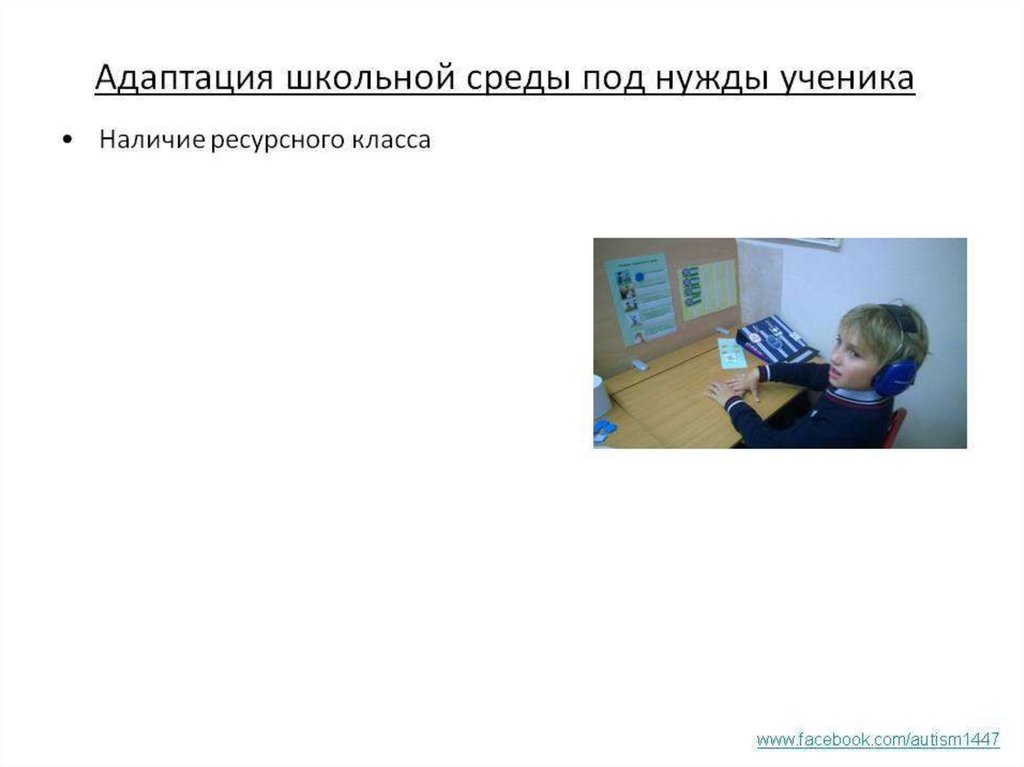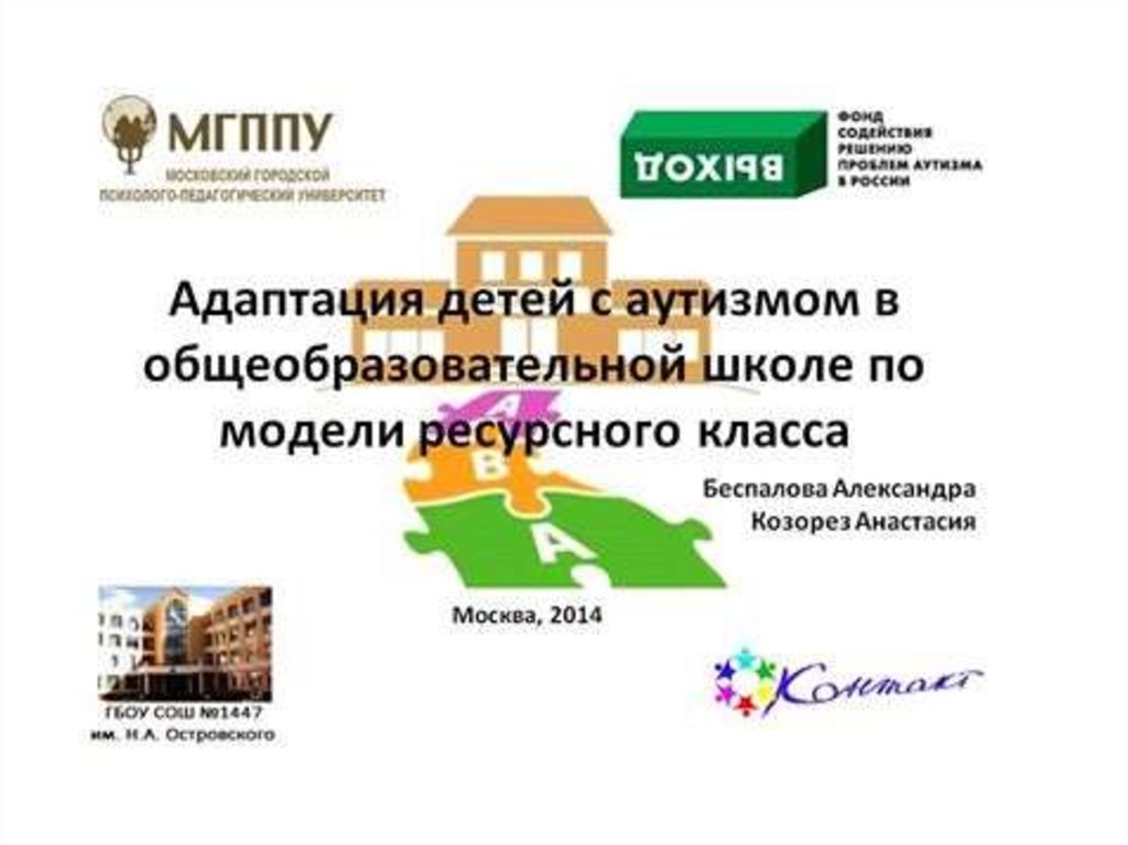 Адаптация детей с аутизмом в общеобразовательной школе по модели ресурсного класса