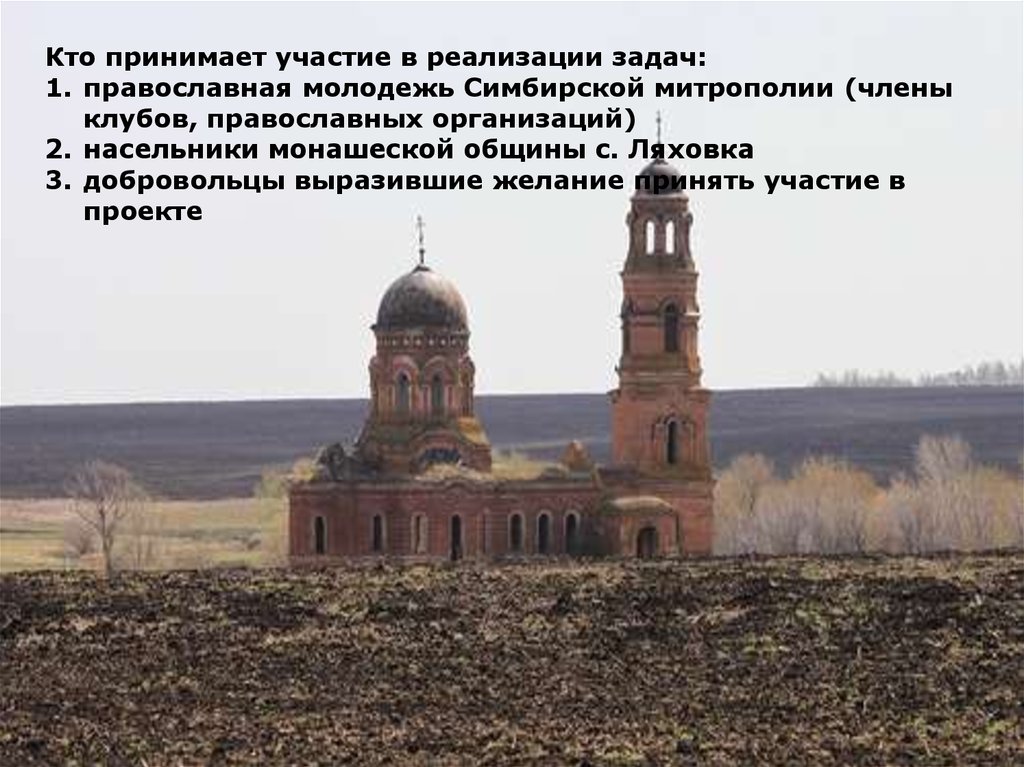 Кто принимает участие в реализации задач:1. православная молодежь Симбирской митрополии (члены