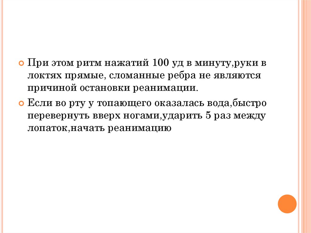 При этом ритм нажатий 100 уд в минуту,руки влоктях прямые, сломанные ребра не являются