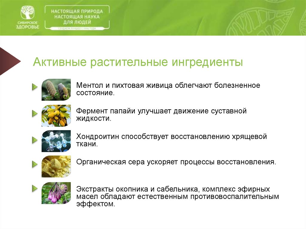 Активные растительные ингредиентыМентол и пихтовая живица облегчают болезненное