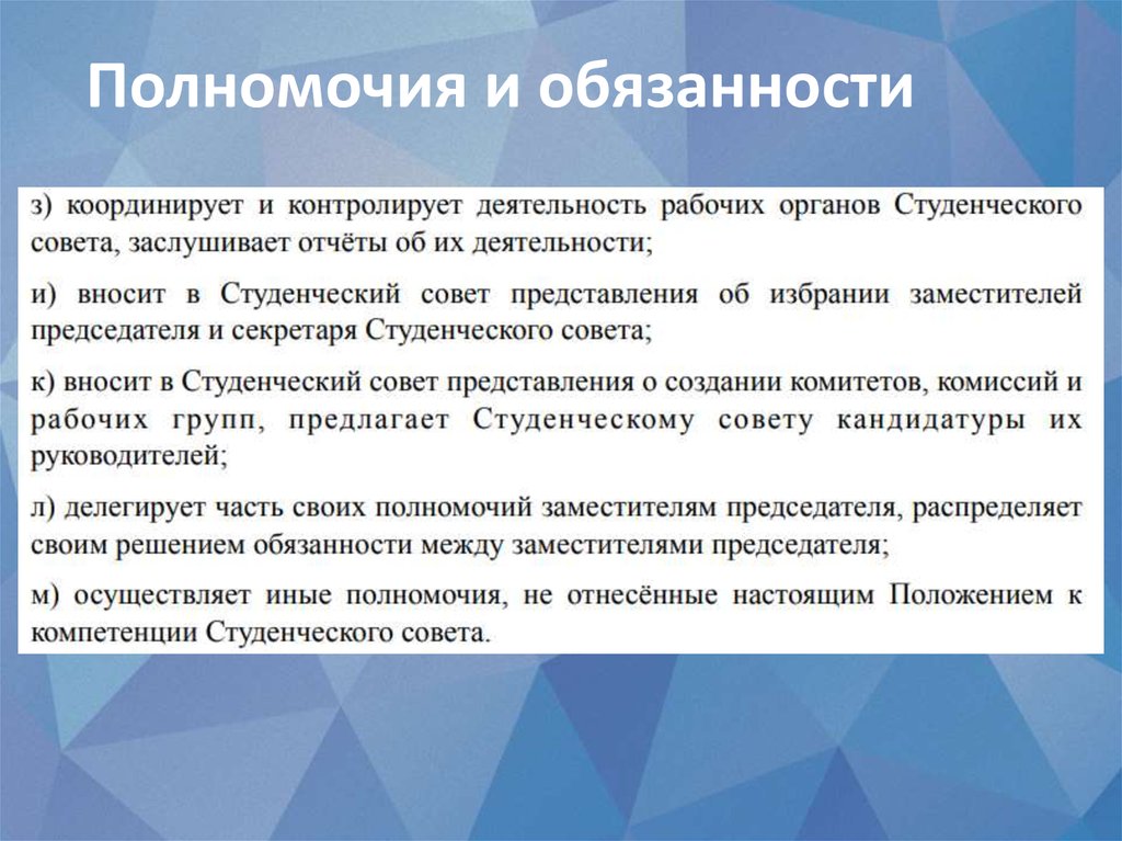 Председатель Студсовета является постояннодействующим единоличным исполнительным