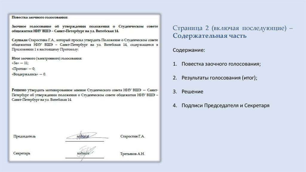 Студсовет НИЧ ВШЭ Санкт-Петербург. Протоколы: виды, структура, содержание
