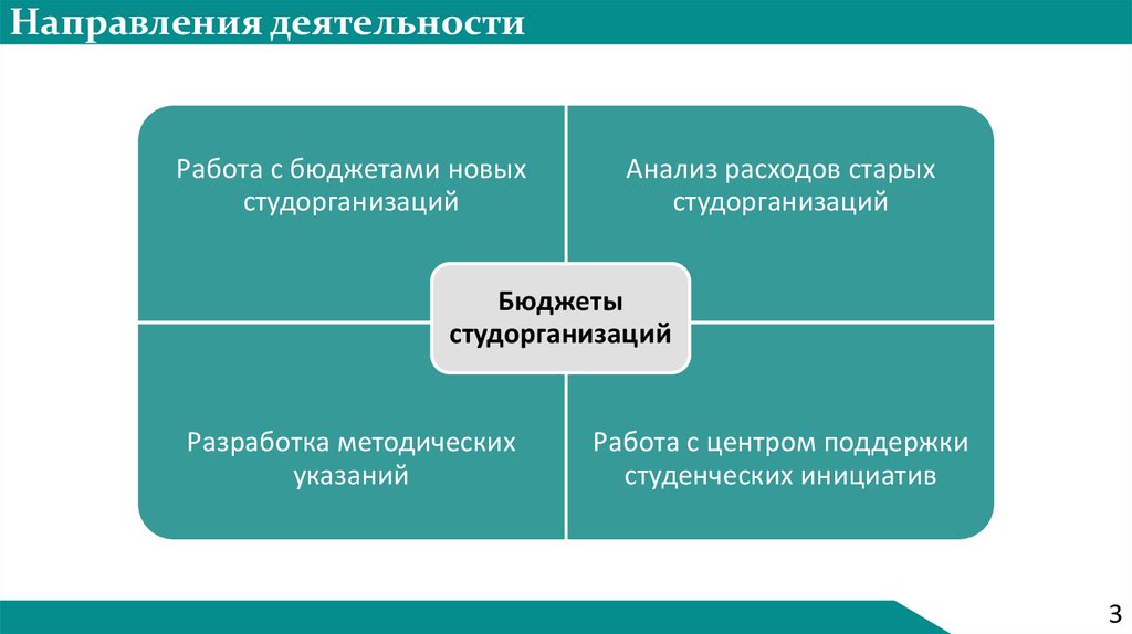 Направления деятельностиРабота с финансовохозяйственным планом