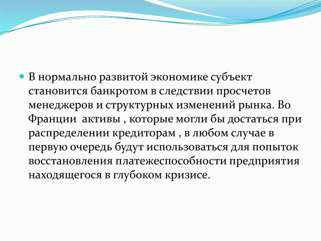 В 1985 году во Франции был принят новый закон,касающийся несостоятельности предприятий