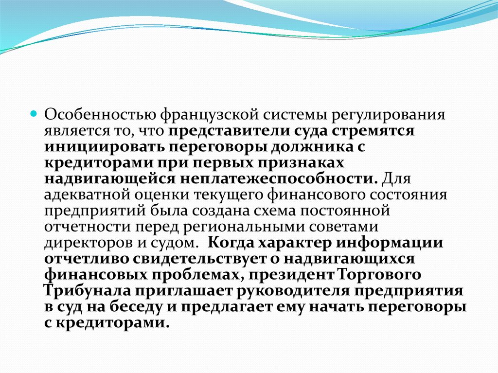 Особенностью французской системы регулированияявляется то, что представители суда стремятся