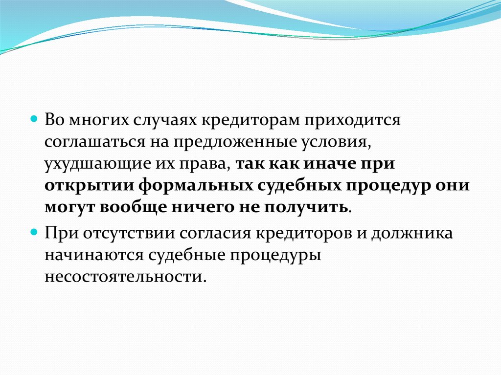 Во многих случаях кредиторам приходитсясоглашаться на предложенные условия,
