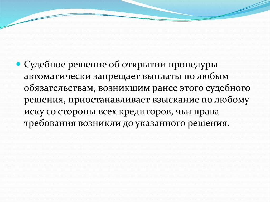 Судебное решение об открытии процедурыавтоматически запрещает выплаты по любым