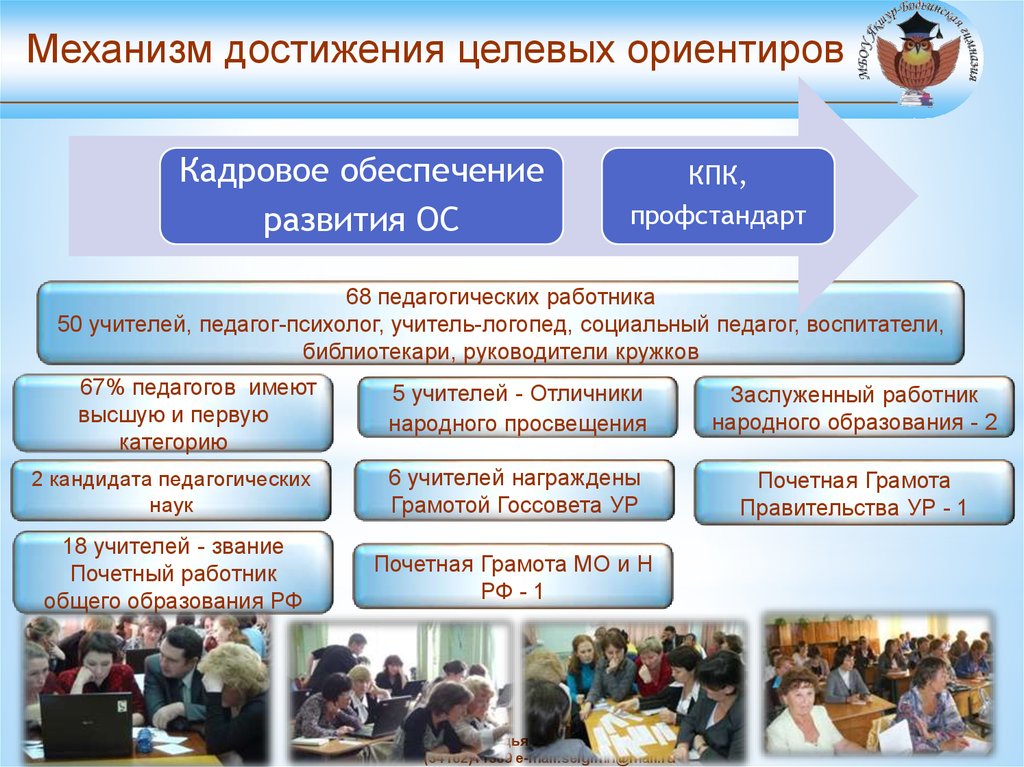 Механизм достижения целевых ориентировКадровое обеспечение