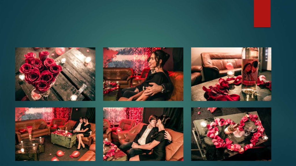 лепестками роз и свечами;