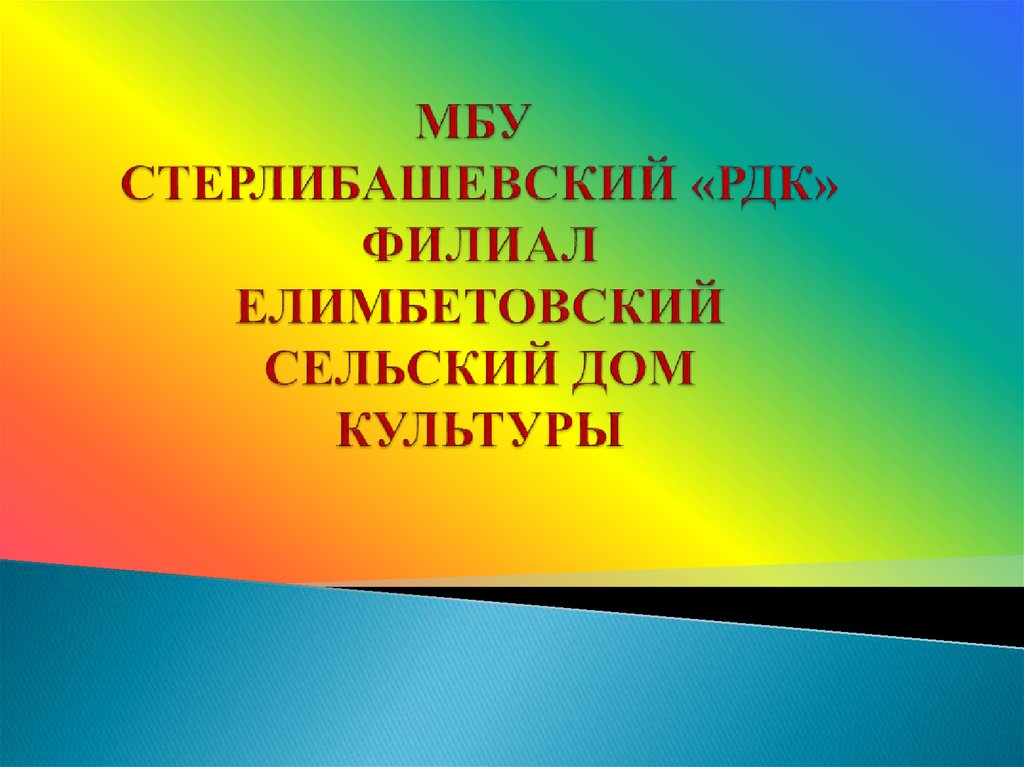 1. МБУ СТЕРЛИБАШЕВСКИЙ «РДК» ФИЛИАЛ ЕЛИМБЕТОВСКИЙ СЕЛЬСКИЙ ДОМ КУЛЬТУРЫ