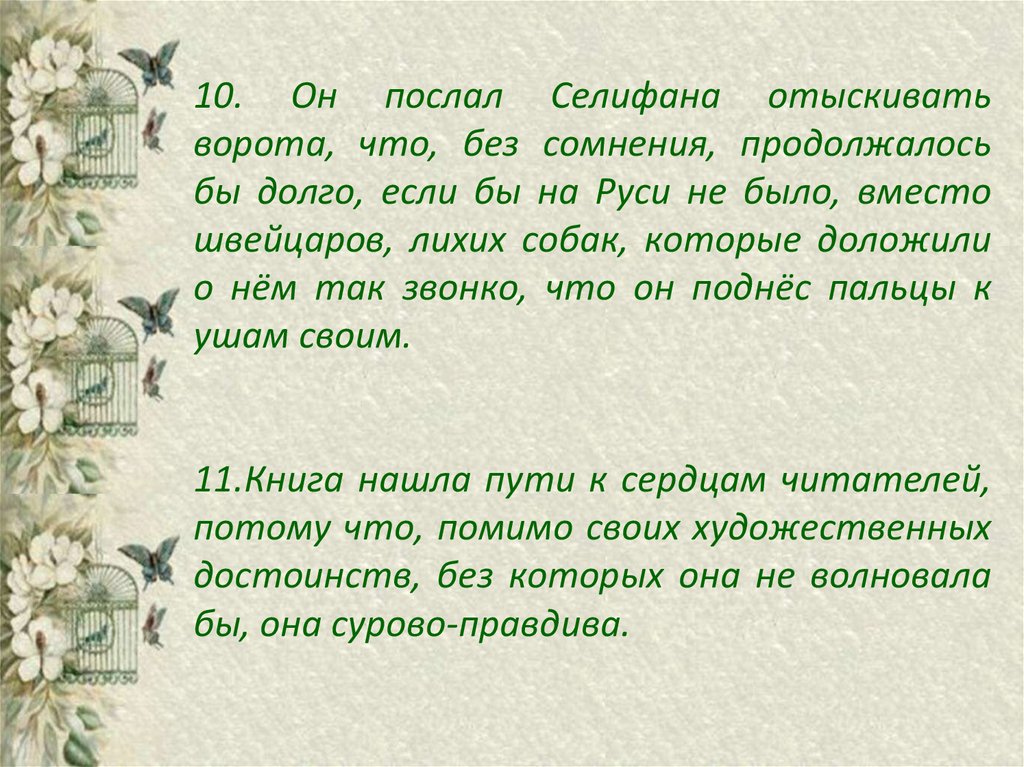 10. Он послал Селифана отыскиватьворота, что, без сомнения, продолжалось