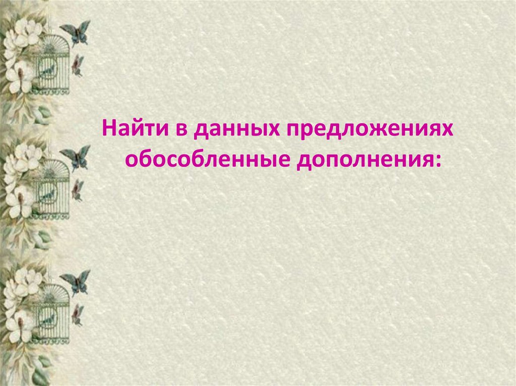 Обособленные дополнения выражаются:именами существительными с предлогами