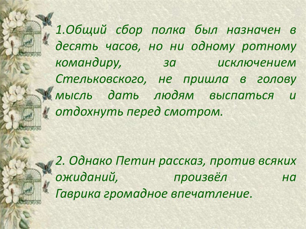 1.Общий сбор полка был назначен вдесять часов, но ни одному ротному