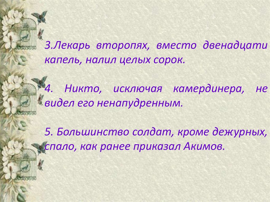 3.Лекарь второпях, вместо двенадцатикапель, налил целых сорок.