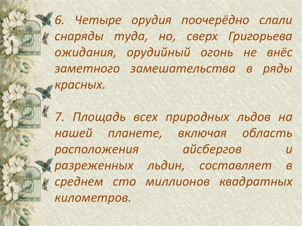 6. Четыре орудия поочерёдно слалиснаряды туда, но, сверх Григорьева