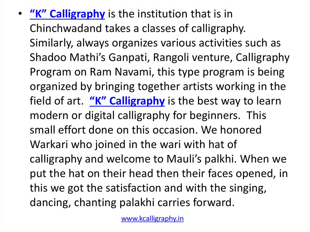 • “K” Calligraphy is the institution that is inChinchwadand takes a classes of calligraphy.