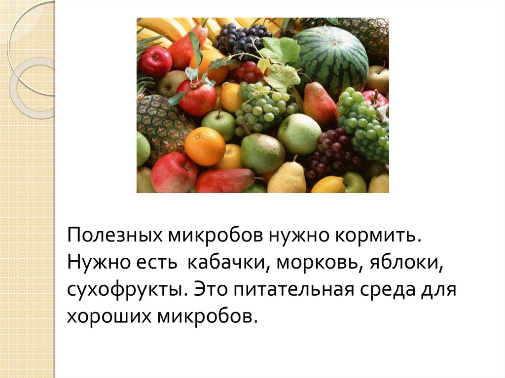Полезных микробов нужно кормить.Нужно есть кабачки, морковь, яблоки,