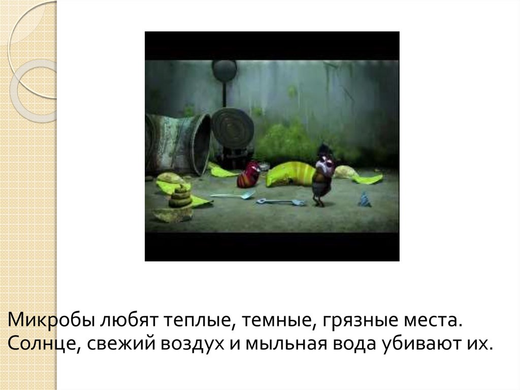 Микробы любят теплые, темные, грязные места.Солнце, свежий воздух и мыльная вода убивают их.