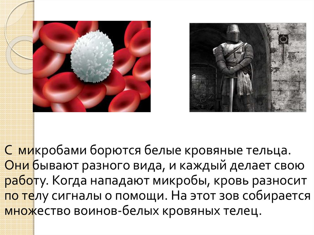 С микробами борются белые кровяные тельца.Они бывают разного вида, и каждый делает свою