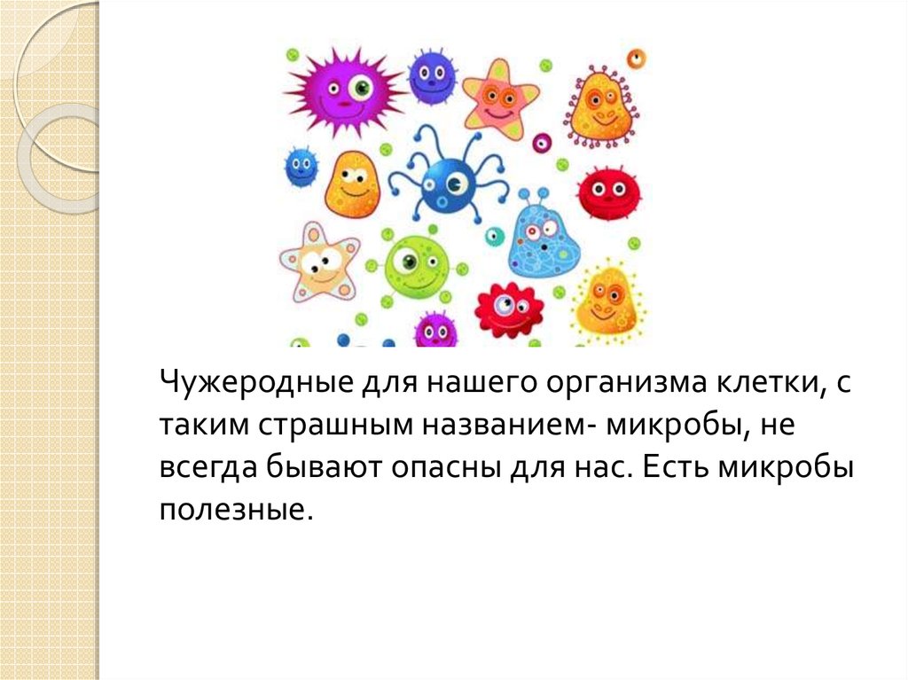 Чужеродные для нашего организма клетки, стаким страшным названием- микробы, не