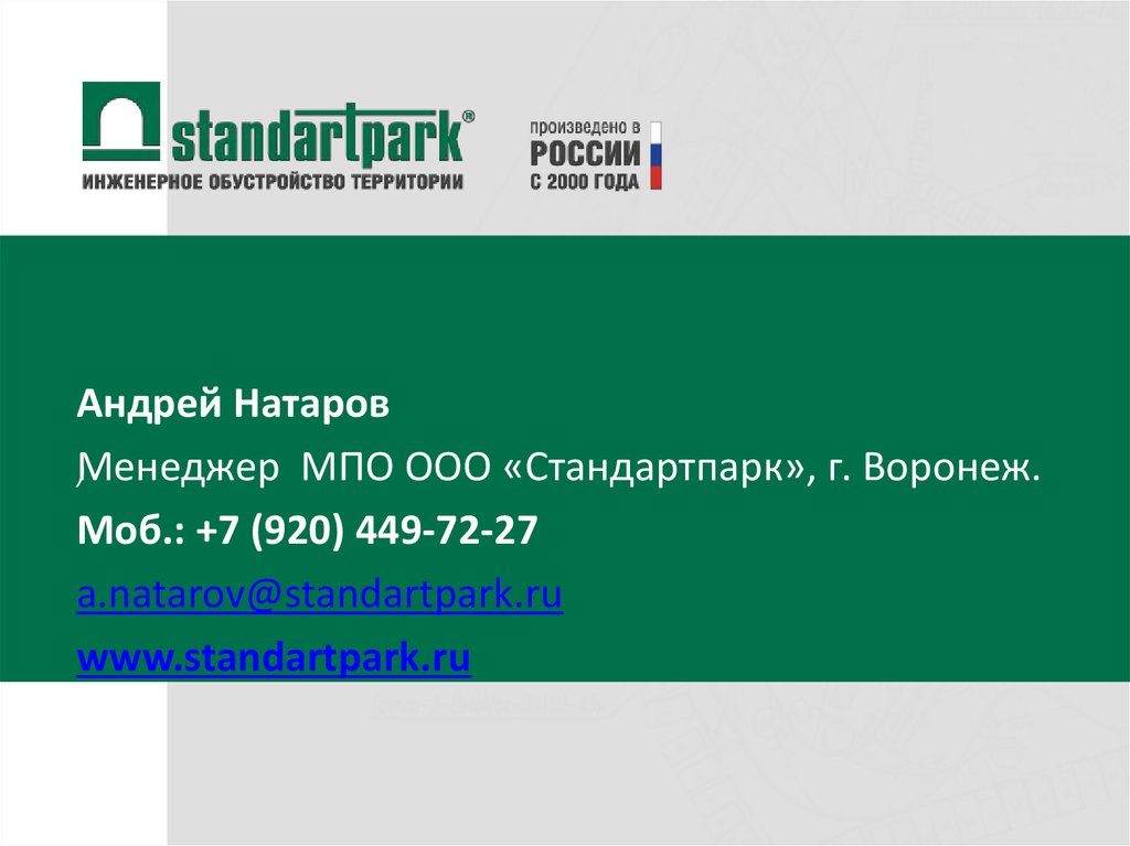 Андрей Натаров)Менеджер МПО ООО «Стандартпарк», г. Воронеж.
