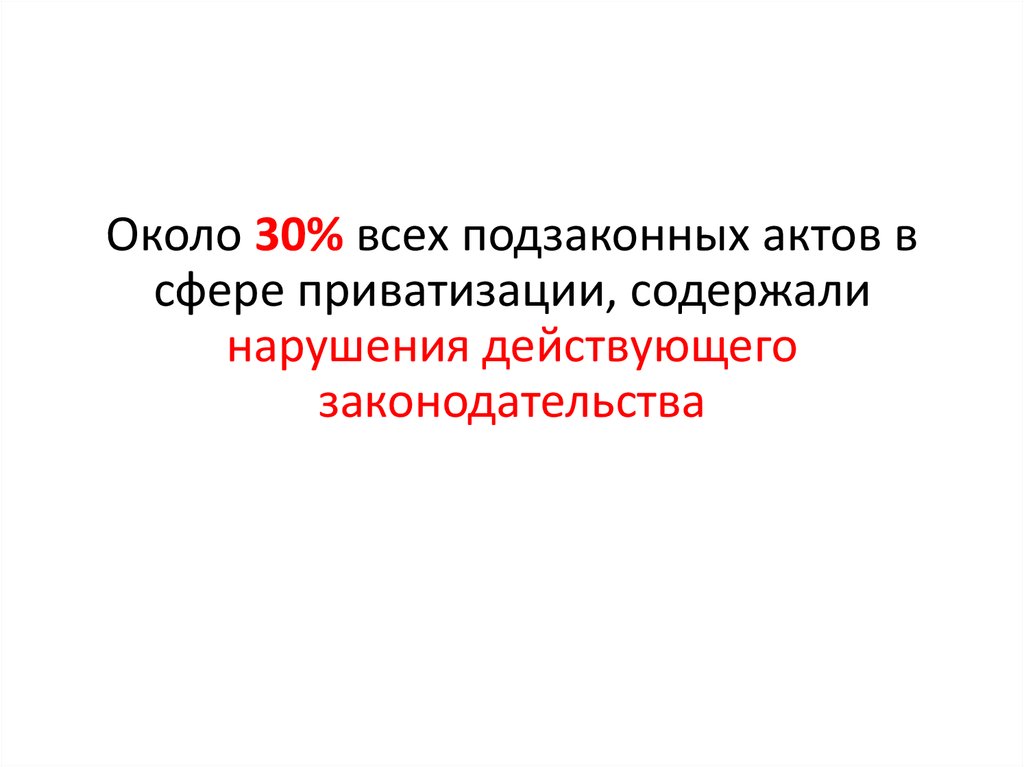 Около 30% всех подзаконных актов всфере приватизации, содержали