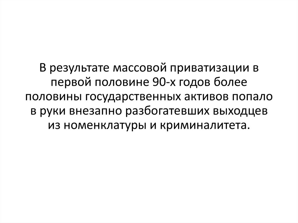 В результате массовой приватизации впервой половине 90-х годов более
