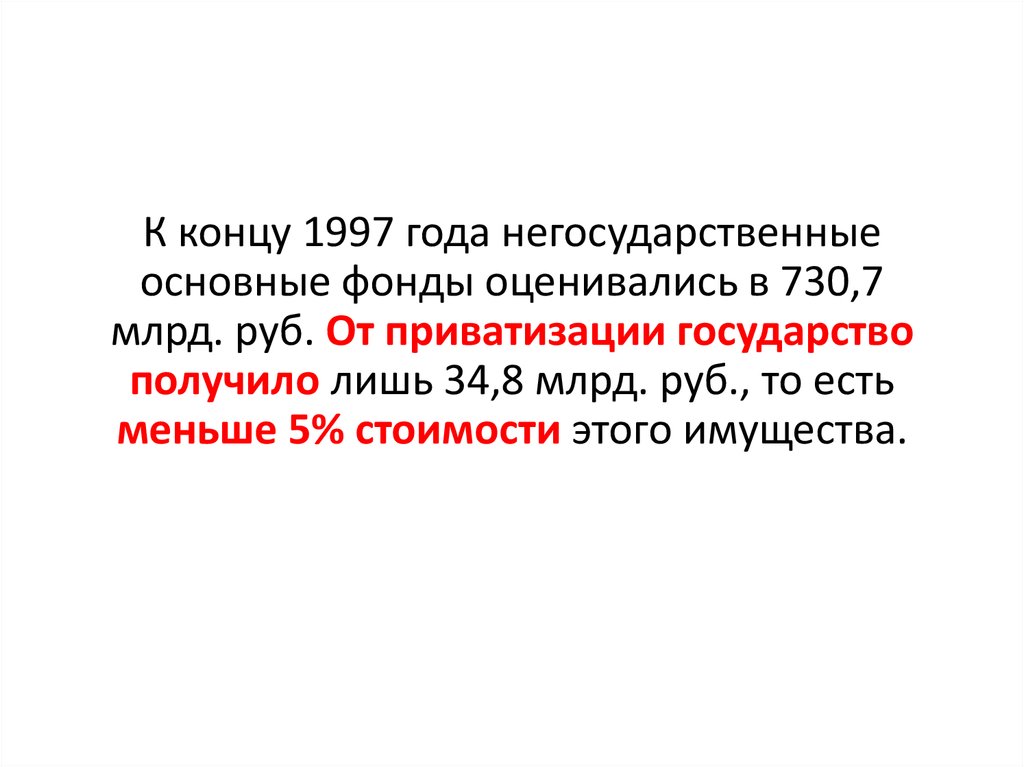 К концу 1997 года негосударственныеосновные фонды оценивались в 730,7