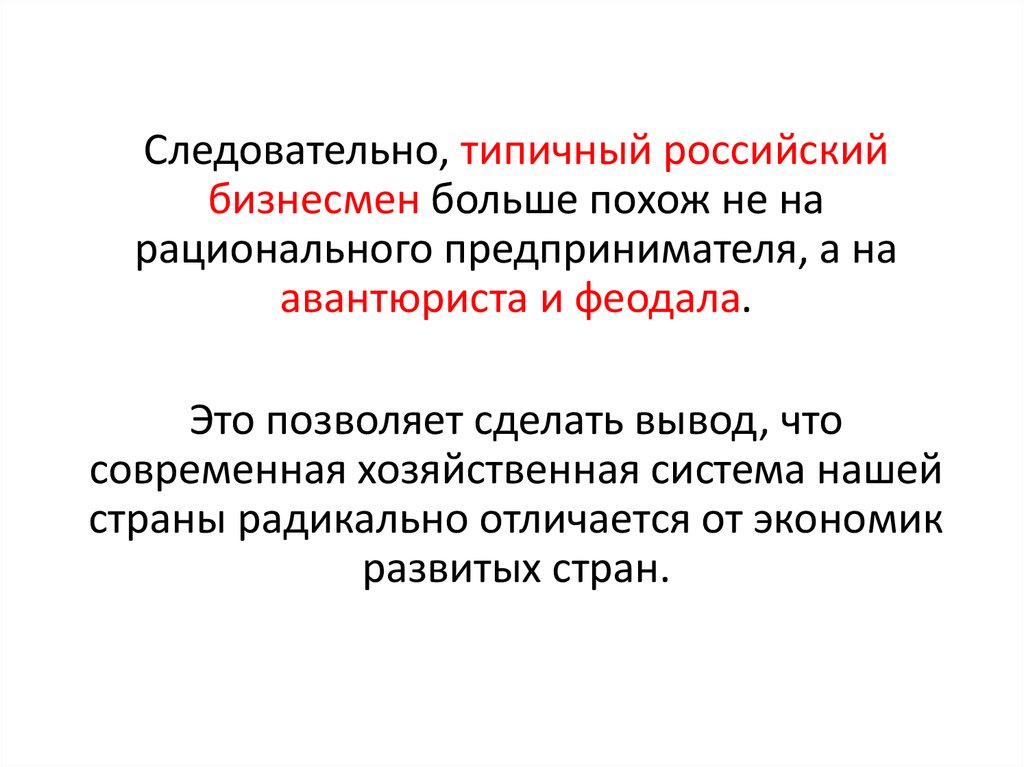 Следовательно, типичный российскийбизнесмен больше похож не на