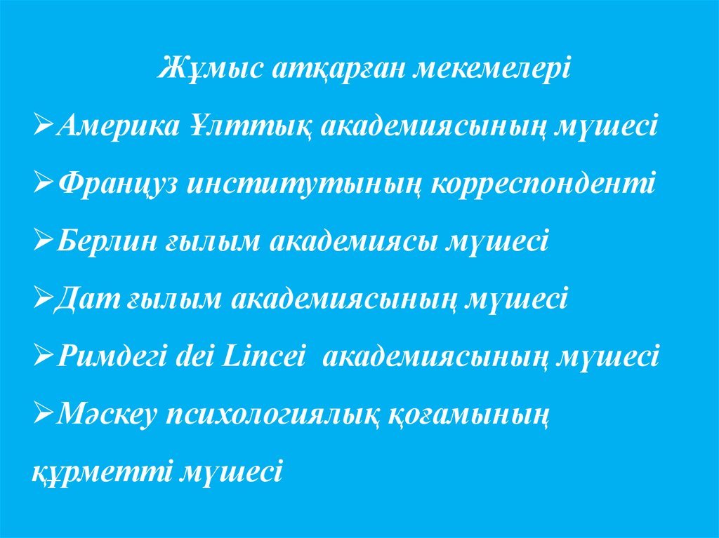 Жұмыс атқарған мекемелеріАмерика Ұлттық академиясының мүшесі