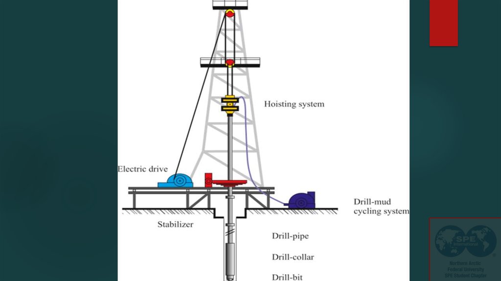 6. Drilling line - the wire горе connecting the drawworks, crown block and traveling block that is used to raise or lower drill