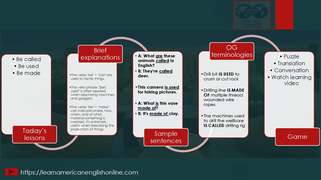 •The verbs "be" + "make" can indicate where, how, when, and of what material something is created