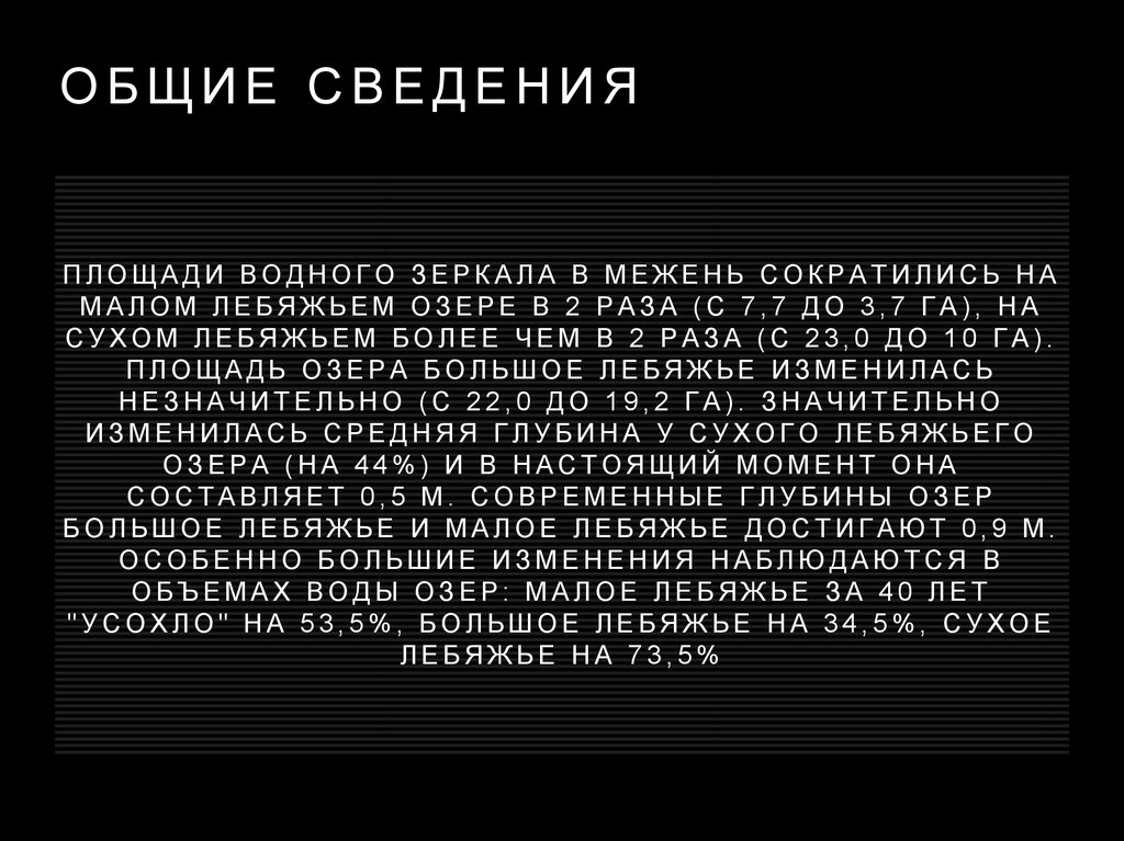 ОБЩИЕ СВЕДЕНИЯПЛОЩАДИ ВОДНОГО ЗЕРКАЛА В МЕЖЕНЬ СОКРАТИЛИСЬ НА