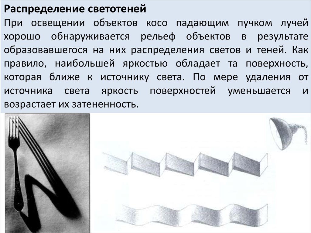 Распределение светотенейПри освещении объектов косо падающим пучком лучей